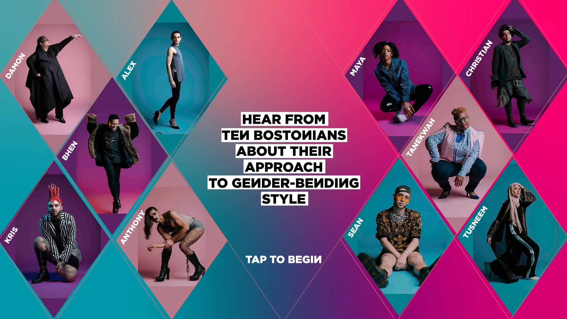 This project hit a lot of notes for me as an interactive designer at the MFA and an artist within Boston’s LGBTQIA Community. GBF was a multi-channel interactive narrative project created for the Gender Bending Fashion Exhibition. The challenge was to design a symbiotic experience using photography, branding, animation, written narratives, and UX Design. The solution ended up boldly elevating the voices of the Gender Bending Queer community within Boston in an often traditional museum space by displaying color, style, and diversity front and center.